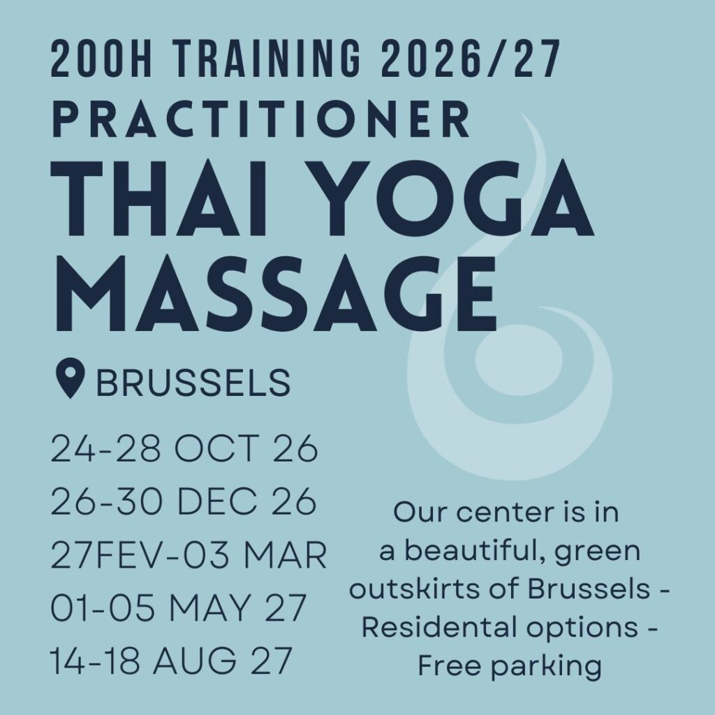 Your registration is effective with the confirmation by mail + the total course fees transferred to the account of the ASBL ECOLE DE THAI YOGA MASSAGE